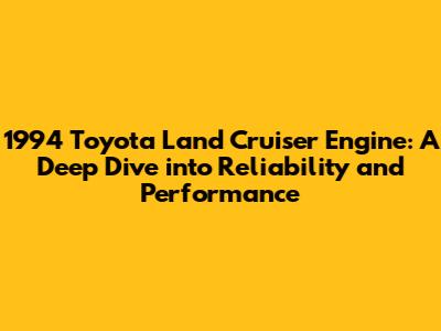 1994 Toyota Land Cruiser Engine: Troubleshooting, Maintenance, And Upgrades