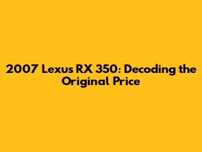 Hey everyone! Today, we're diving deep into the world of the 2007 Lexus RX 350, specifically looking at its original price. Figuring out the original sticker price of a car can be super helpful, whether you're just curious, thinking about buying a used one, or maybe even just reminiscing about the good old days. The 2007 RX 350 was a pretty significant vehicle, blending luxury, performance, and reliability, making it a popular choice back then and still sought after today. Let's get down to the nitty-gritty and find out how much this beauty cost when it first rolled off the assembly line.