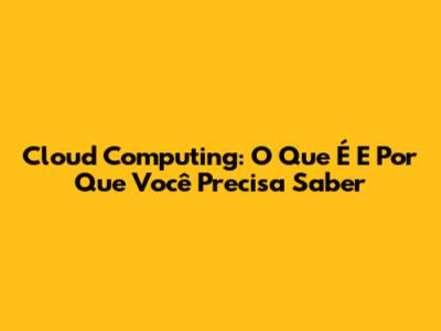 Cloud Computing: O Que É E Por Que Você Precisa Saber