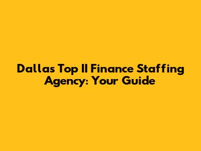 Dallas' Top II Finance Staffing Agency: Your Guide