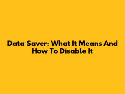 Data Saver: What It Means And How To Disable It