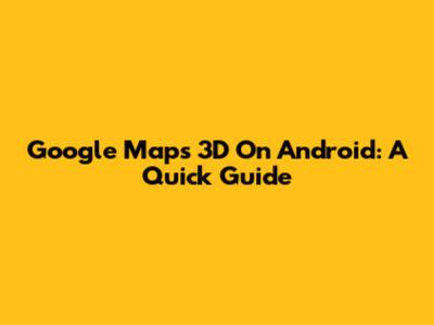 Google Maps 3D On Android: A Quick Guide