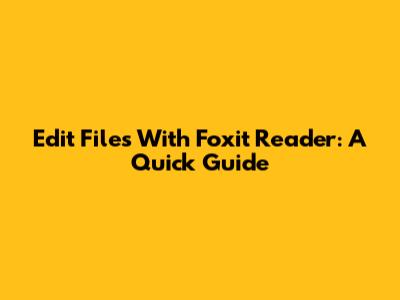 Edit Files With Foxit Reader: A Quick Guide