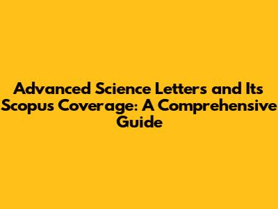 Is Advanced Science Letters Indexed in Scopus?