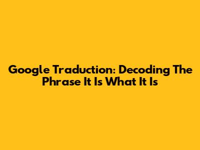 Google Traduction: Decoding The Phrase 'It Is What It Is'
