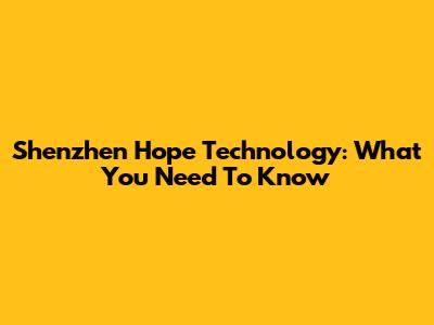 Shenzhen Hope Technology: What You Need To Know