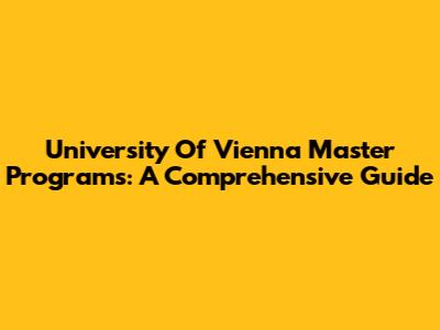 University Of Vienna Master Programs: A Comprehensive Guide