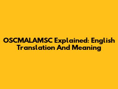 OSCMALAMSC Explained: English Translation And Meaning