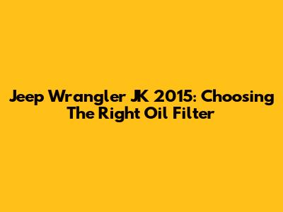 Jeep Wrangler JK 2015: Choosing The Right Oil Filter