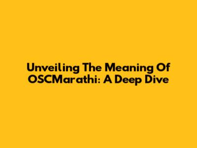 Unveiling The Meaning Of OSCMarathi: A Deep Dive