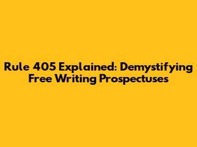 Rule 405 Explained: Demystifying Free Writing Prospectuses