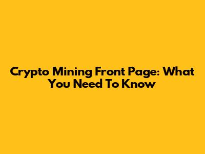 Crypto Mining Front Page: What You Need To Know