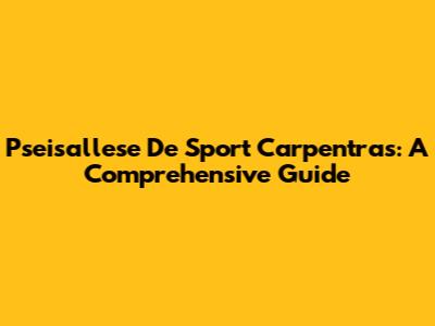 Pseisallese De Sport Carpentras: A Comprehensive Guide