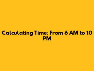 Let’s make it even easier. We'll break down the time frame into smaller, more manageable chunks. From 6 AM to 12 PM is a straightforward 6 hours. Then, from 12 PM to 10 PM, we have 10 hours. Add those together: 6 hours + 10 hours = 16 hours. Boom! You've got your answer. This breakdown approach allows you to work through the numbers gradually, which minimizes the chances of making errors. It also helps to solidify your grasp of the material, making the concept more intuitive.