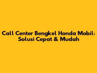 Call Center Bengkel Honda Mobil: Solusi Cepat & Mudah