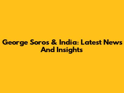 George Soros & India: Latest News And Insights