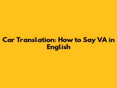 Car Translation: How To Say 'VA' In English