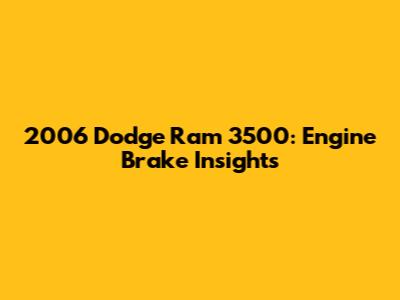 2006 Dodge Ram 3500: Engine Brake Insights