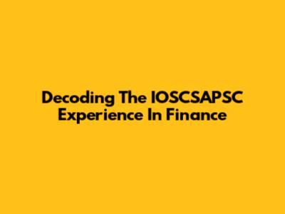 Decoding The IOSCSAPSC Experience In Finance