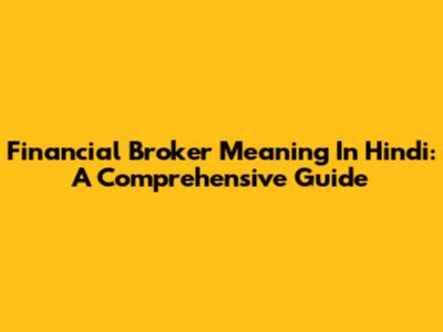Financial Broker Meaning In Hindi: A Comprehensive Guide