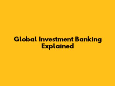 Global Investment Banking Explained