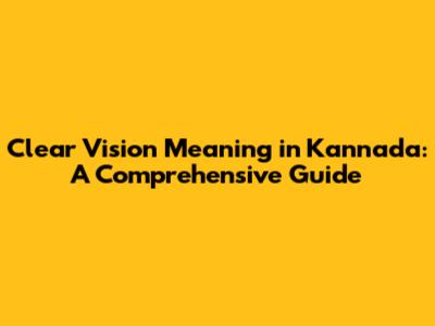 Hey guys! Ever wondered what "clear vision" means in Kannada? Well, you're in the right place! We're going to break down the meaning of clear vision in Kannada, explore its importance, and provide you with a comprehensive understanding. So, let's dive right in!