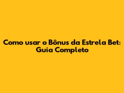 Como Usar O Bônus Da Estrela Bet: Guia Completo