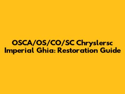 OSCA/OS/CO/SC Chryslersc Imperial Ghia: Restoration Guide