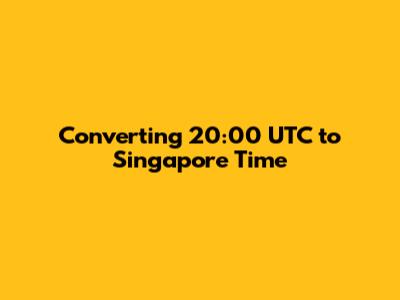Hey there, time travelers and timezone enthusiasts! Ever found yourself scratching your head, trying to figure out what time it is in Singapore when your favorite show airs at 20:00 Coordinated Universal Time (UTC)? Well, you're not alone! Converting 20:00 UTC to Singapore Time is a common query, and thankfully, it's not as complicated as it might seem. In this article, we'll break down the process step-by-step, making sure you can easily convert UTC to Singapore Time (SGT) without any fuss. We will also explore why knowing the exact time in Singapore matters, whether you're coordinating with friends, planning a business meeting, or simply curious. So, buckle up, and let's decode the mysteries of time zones together!