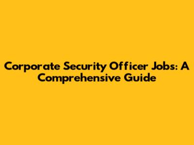 Corporate Security Officer Jobs: A Comprehensive Guide