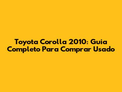 Toyota Corolla 2010: Guia Completo Para Comprar Usado
