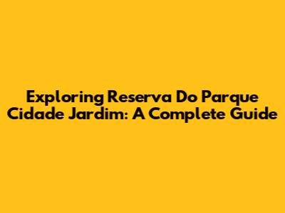 Exploring Reserva Do Parque Cidade Jardim: A Complete Guide