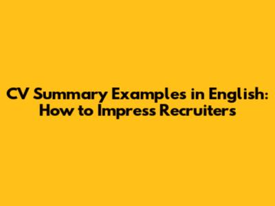 CV Summary Examples In English: How To Impress Recruiters