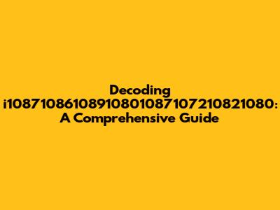 Hey guys! Ever stumbled upon something that looks like a random jumble of numbers and letters and thought, "What in the world is that?" Well, today we're diving deep into the mysterious world of "i10871086108910801087107210821080." Sounds like something out of a sci-fi movie, right? But don't worry, by the end of this article, you'll not only understand what it is but also appreciate its significance. This is going to be an exciting journey, so buckle up and let's get started!