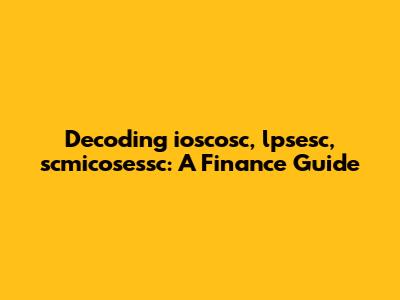 Hey guys! Ever stumbled upon the acronyms ioscosc, lpsesc, and scmicosessc in the world of finance and felt like you were trying to decipher an ancient code? You're not alone! These terms, while specific, play crucial roles in certain financial contexts. Let's break them down in a way that's easy to understand, even if you're not a seasoned finance guru. We'll explore what each one means, why they matter, and how they fit into the bigger picture of the financial landscape. So, buckle up, and let's demystify these financial acronyms together!