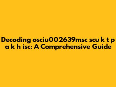 Alright, guys, let's dive deep into this seemingly cryptic string: osciu002639msc scu k t p a k h isc. At first glance, it looks like a jumble of letters and numbers, but let's break it down piece by piece. Understanding such strings is crucial in various fields, including data analysis, computer science, and even cryptography. In this article, we're going to dissect each component, speculate on its possible meanings, and provide a comprehensive guide to help you understand similar alphanumeric codes you might encounter. So, buckle up, and let's get started!