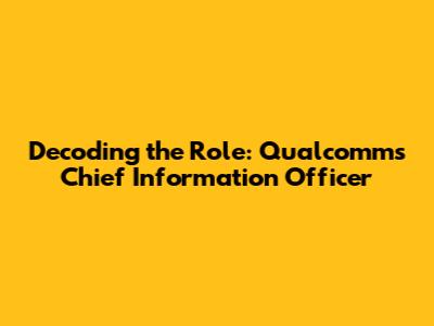 - By supporting technological advancements and fostering a culture of innovation, the CIO helps ensure that Qualcomm remains at the forefront of the technology industry, influencing the future of mobile communications and beyond.