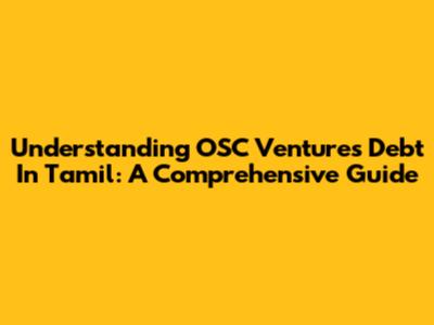 Understanding OSC Ventures Debt In Tamil: A Comprehensive Guide