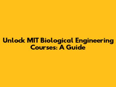 Unlock MIT Biological Engineering Courses: A Guide