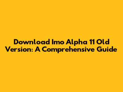 Download Imo Alpha 11 Old Version: A Comprehensive Guide