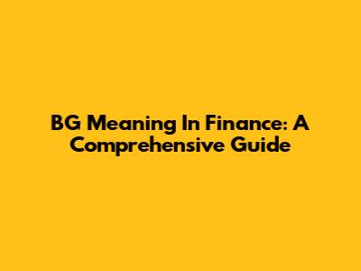 BG Meaning In Finance: A Comprehensive Guide