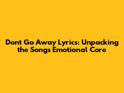 Don't Go Away Lyrics: A Deep Dive Into The Song's Meaning