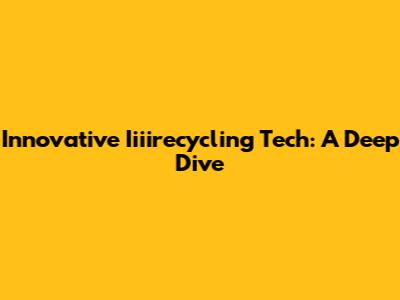 Innovative Iiiirecycling Tech: A Deep Dive