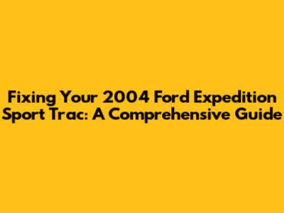 Fixing Your 2004 Ford Expedition Sport Trac: A Comprehensive Guide