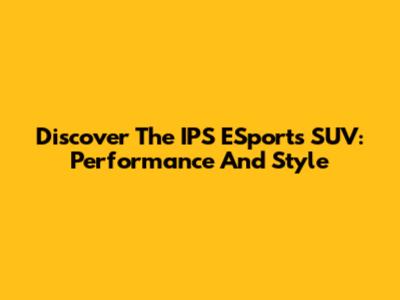 Discover The IPS ESports SUV: Performance And Style