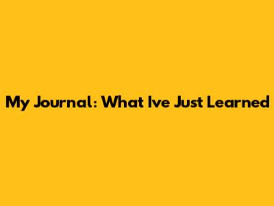 My Journal: What I've Just Learned