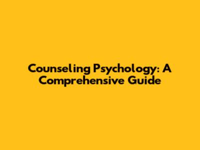 Counseling Psychology: A Comprehensive Guide