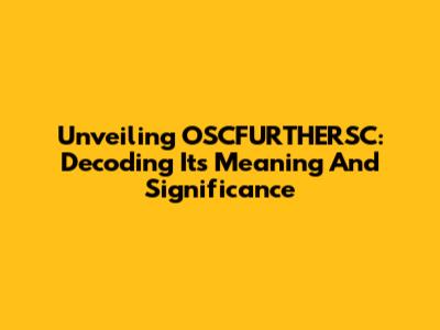 Unveiling OSCFURTHERSC: Decoding Its Meaning And Significance