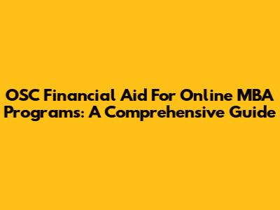 OSC Financial Aid For Online MBA Programs: A Comprehensive Guide