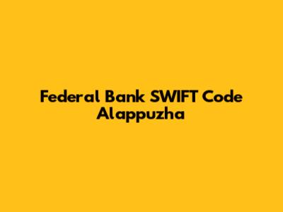 - Common SWIFT Code: FDRLINBBXXX (This often serves as the default for branches in Alappuzha)